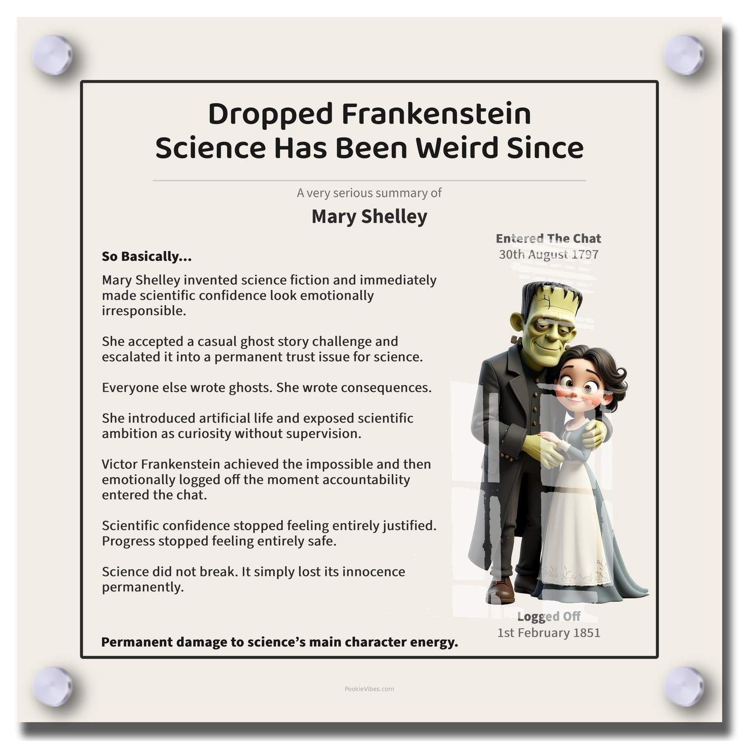 Each Pookie Vibes piece is produced using gallery-grade acrylic designed for clarity, depth, and permanence. This is not a poster. It is a mounted statement object.