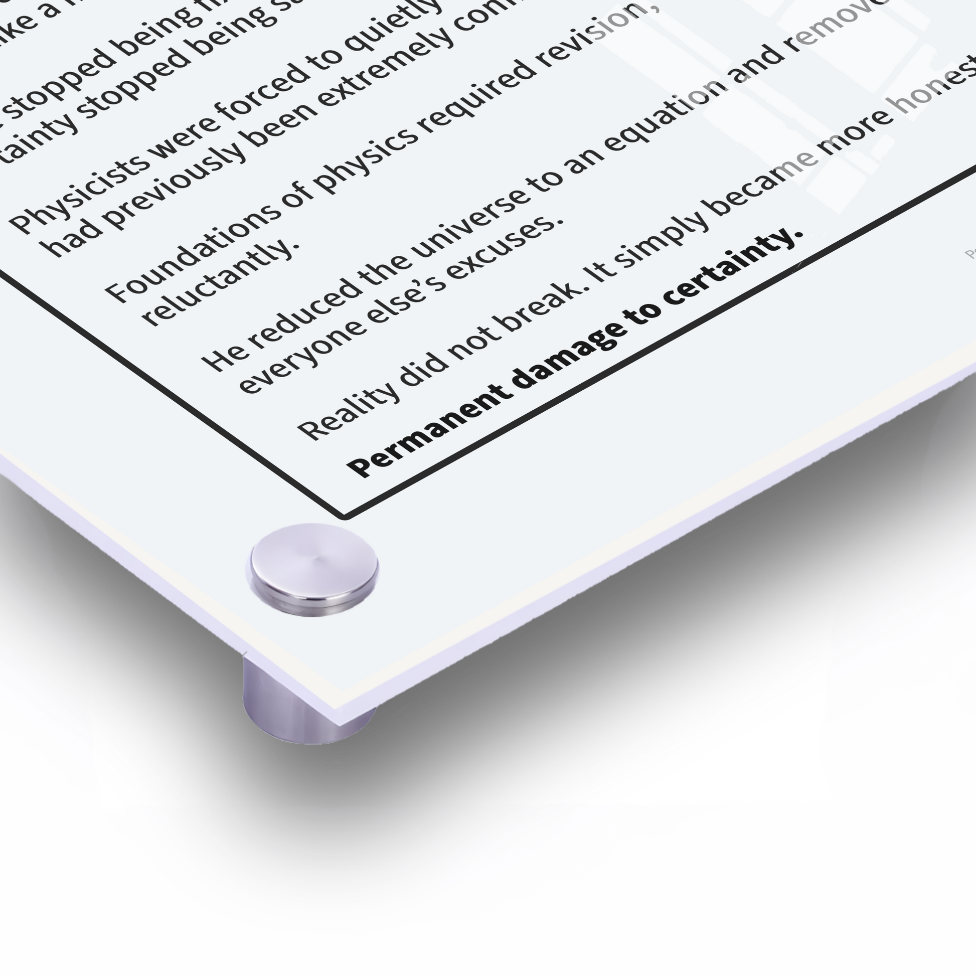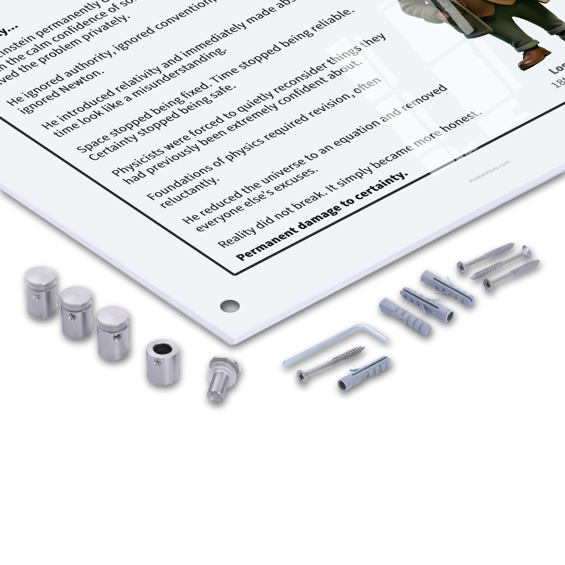 Museum-style statement piece for thinkers who prefer their intelligence slightly radioactive.